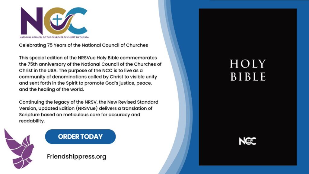 In 2018, after a period of inactivity, Friendship Press was reactivated. It currently manages NCC’s bible properties, including the New Revised Standard Version Updated Edition (NRSVue), and publishes new books that continue a nearly 90 year legacy of advocating for justice in urgent times.